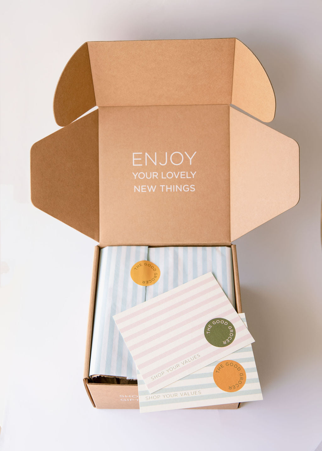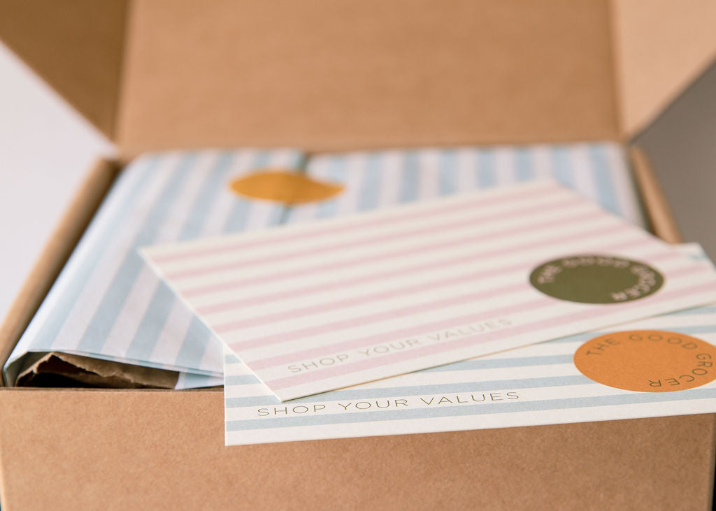 When purchasing a Good Grocer gift box, we'll handwrite your personal message on one of our beautifully designed notecards. If you prefer, choose to upgrade to a greeting card from our selection.